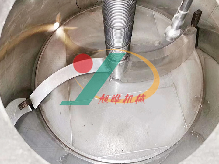 6、攪拌系統(tǒng)配置S型內(nèi)加熱雙葉式空心攪拌器,可對(duì)濾餅進(jìn)行充分?jǐn)嚢韬图訜幔岣呦礈旌透稍镄?